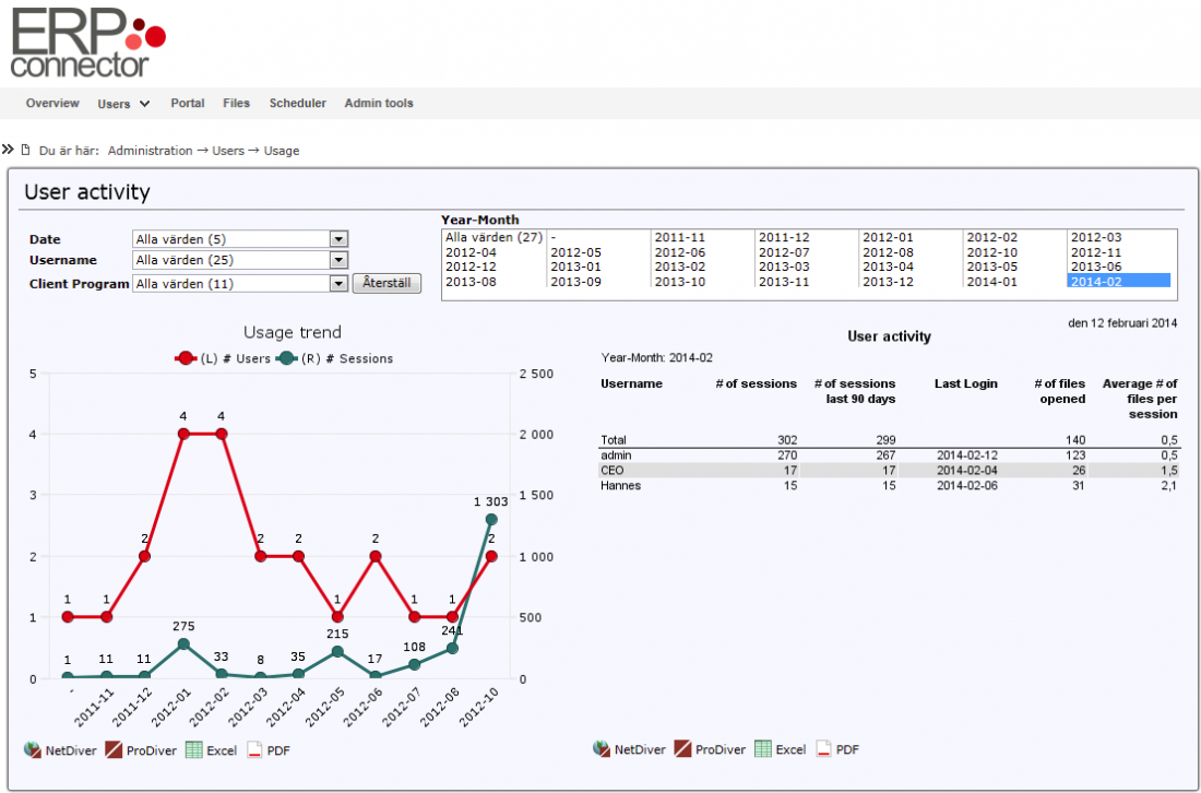 Genom att bryta ner portalaktivitet per användare kan vi enkelt se hur många som utnyttjar systemet och hur många som använder det för sällan.
