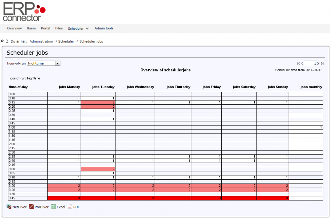 En viktig del är också möjligheten att analysera schemalagda aktiviteter. Detta ger en mycket bra översikt över hur jobben är schemalagda och vilka tidpunkter servern belastas mest.